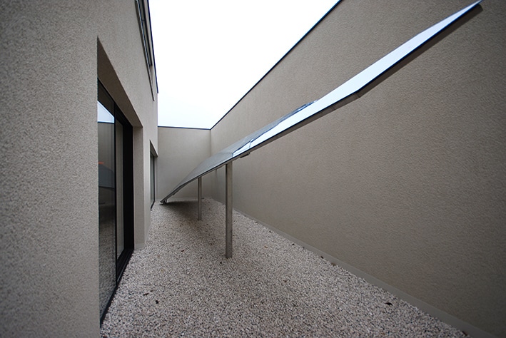 „Dissolvers“ ist in den dafür vorgesehen Ort der von Willl architetur entwickelt wurde, eingepasst und wirkt schwerelos. Durch die Spiegelung des Himmels ändert sich die Skulptur in Farbe und Helligkeit, sie generiert sich immer wieder aufs Neue. Es entsteht ein virtueller Blick in den Raum.