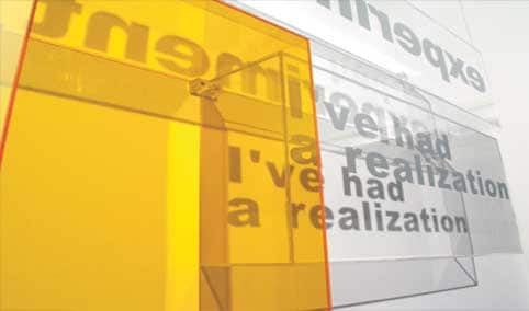 Education Lyrics multiply, are continually expanded and can be combined or swapped. It is a building kit comprising sentences and letters that form patterns. Images emerge, grow smaller, or bigger. Being constantly in motion, they convey a sense of loss of control.