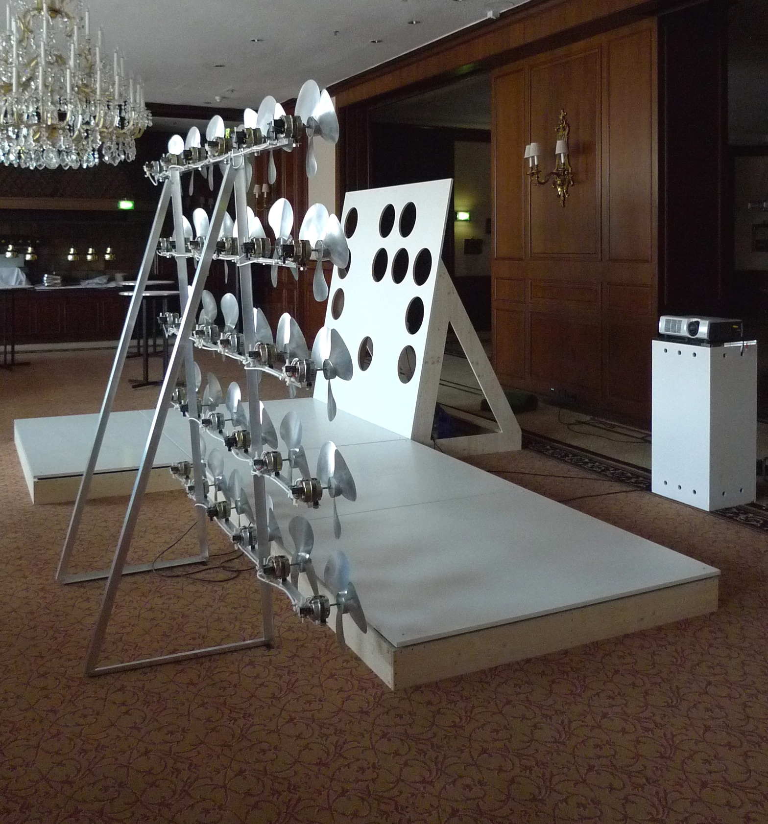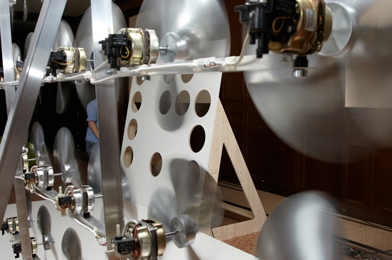 Korrelation heißt die neueste Installation des Künstler Friedrich Biedermann – Eine rüttelde Skulptur/ Bühne die schwerelosigkeit erzeugt.