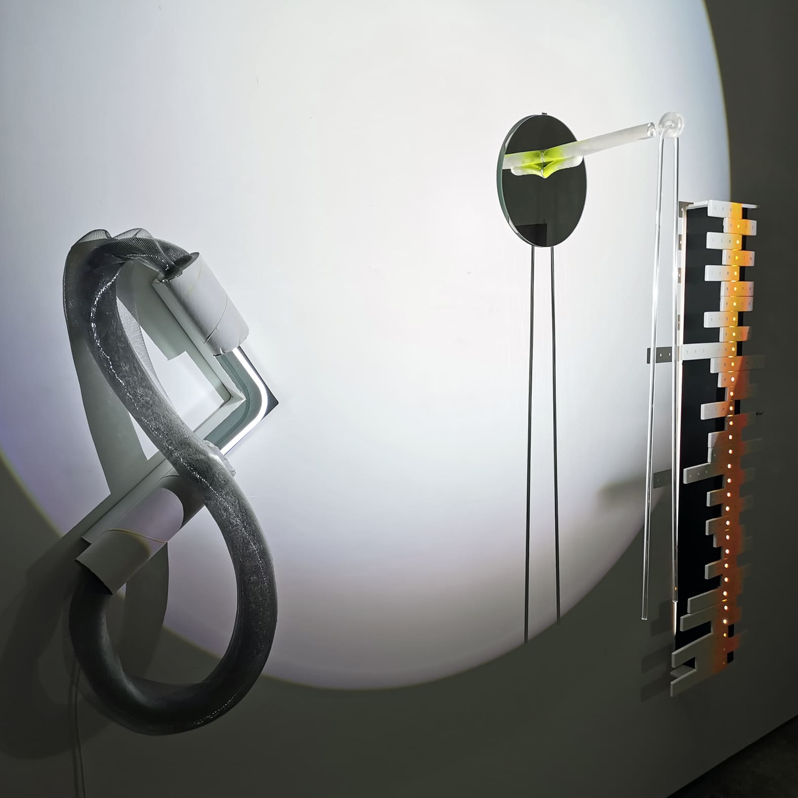 “Light is a small story of infinity” 2020 ist ein Triptychon von Skulpturen die sich der Idee der objektorientierten Onthologie von Licht verschrieben haben. Das Material erzählt eine Geschichte es wird zur Interpretation oder zur Manipulation. Das Licht verstärkt die Annahmen oder überzeichnet den Sinn der Sinnlichkeit. Es ist das Experiment einer Formensprache, der Koexistenz der sich im physischen-materiell wahrnehmbaren Raum formiert.