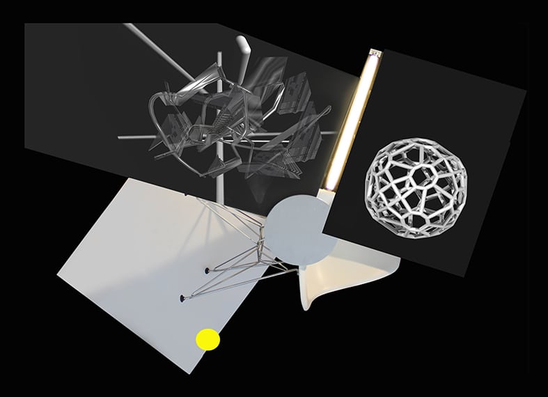 The three-part photo series Variance is based on a variable arrangement of everyday objects: a fluorescent tube, a picture, a drawing and a chair are combined to form a sculpture. This configuration is photographed from above and the photo, at a scale of 1:1, is mounted on the wall. The (three-dimensional) sculpture is thus transformed into a (two-dimensional) duplicate. At the same time, the photo seems like an invitation to the viewers to try for themselves to build the object. The work of art as instruction manual.