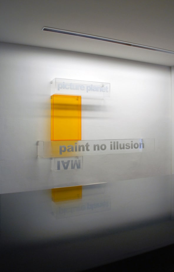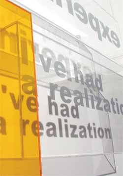 Education Lyrics multiply, are continually expanded and can be combined or swapped. It is a building kit comprising sentences and letters that form patterns. Images emerge, grow smaller, or bigger. Being constantly in motion, they convey a sense of loss of control.