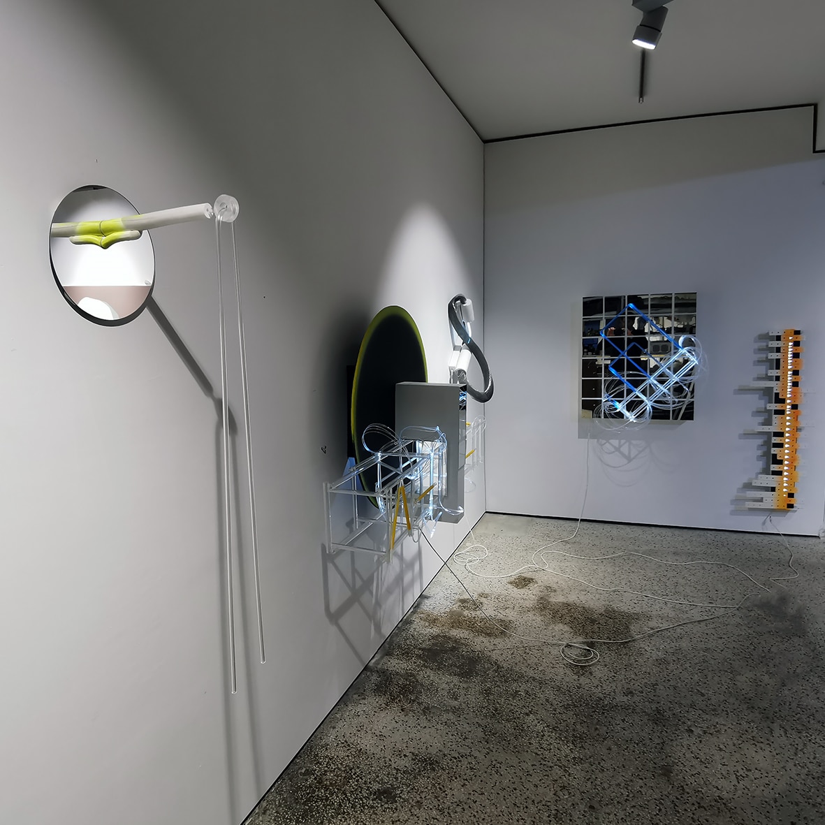 “Light is a small story of infinity” 2020 ist ein Triptychon von Skulpturen die sich der Idee der objektorientierten Onthologie von Licht verschrieben haben. Das Material erzählt eine Geschichte es wird zur Interpretation oder zur Manipulation. Das Licht verstärkt die Annahmen oder überzeichnet den Sinn der Sinnlichkeit. Es ist das Experiment einer Formensprache, der Koexistenz der sich im physischen-materiell wahrnehmbaren Raum formiert.
